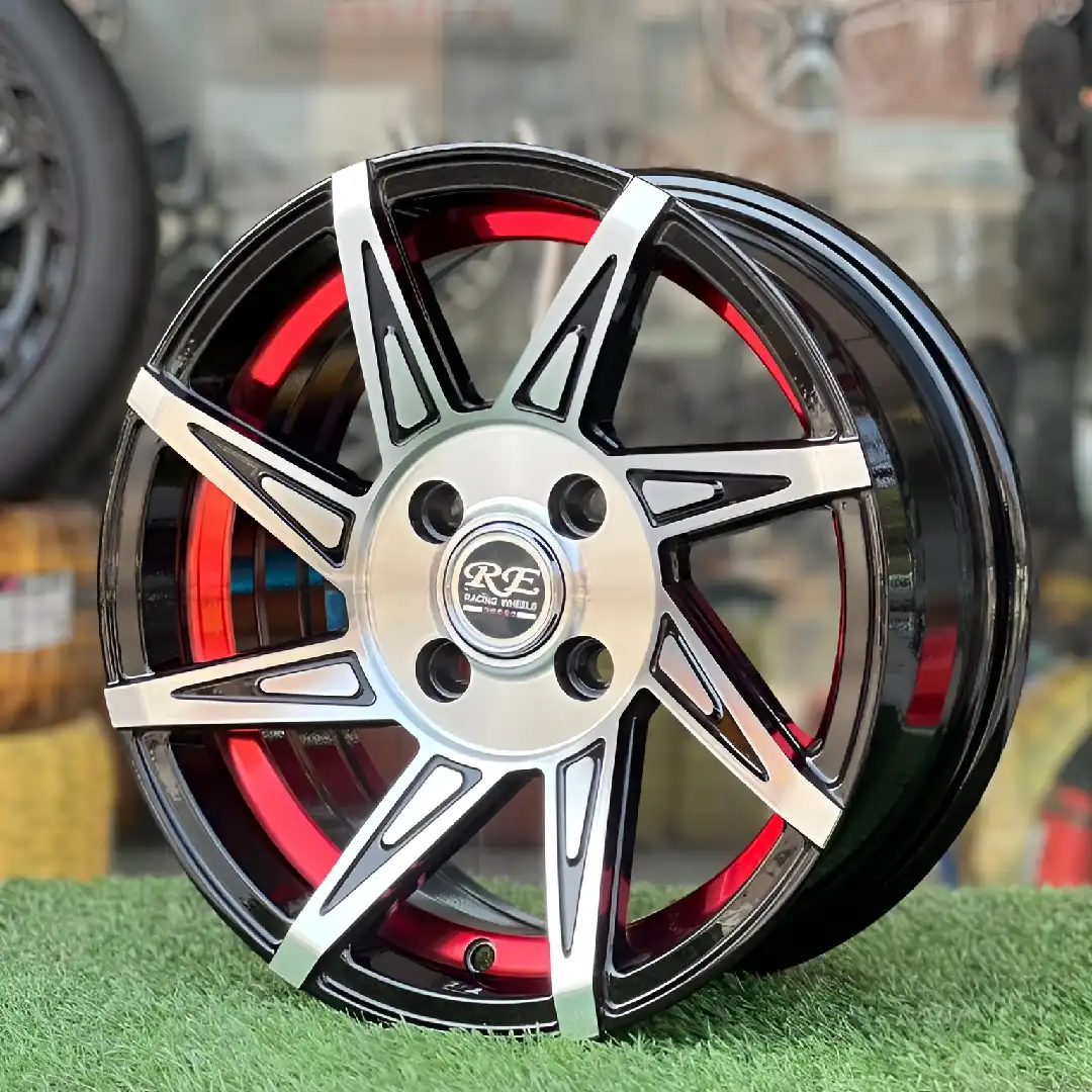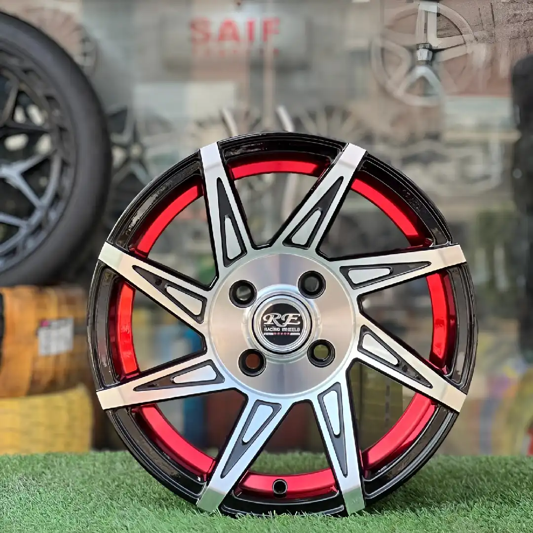 Each rim is crafted from premium alloy metal that keeps it light but tough. The combination of black, red, and silver not only enhances the design but also improves road appeal. With a perfectly balanced weight, these rims ensure smooth driving and reliable performance on every type of road in Pakistan.